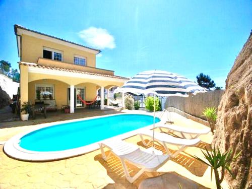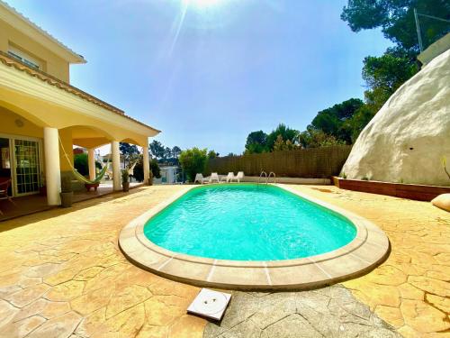 Villa Caroline se nachází v Lloret de Mar a nabízí venkovní bazén, gril a zařízenou terasu s výhledem na hory.