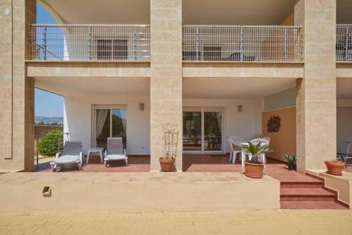 Apartmán má 3 ložnice, 2 koupelny, ložní prádlo, ručníky, TV, kuchyň s kompletním vybavením a terasu s výhledem na bazén. Koupelna je vybavená bidetem, sprchou a fénem.