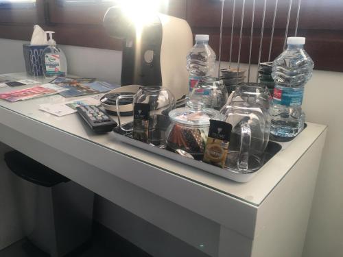 • Běžně používané předměty jako jídelní lístky, magazíny, papíry nebo pera odstraněny z dosahu