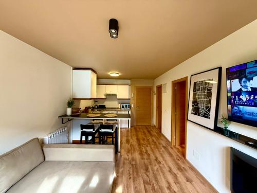 Tento apartmán má 1 ložnici, 1 koupelnu, ložní prádlo, ručníky, TV s plochou obrazovkou, jídelní část a kuchyň s kompletním vybavením. Může se pochlubit také balkonem s výhledem na hory. Koupelna je vybavená sprchou a fénem.