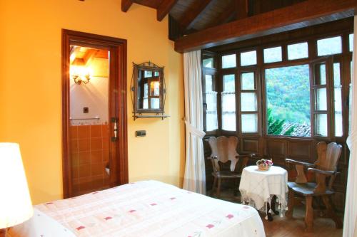Casas Rurales Prieto má domy zařízené v tradičním horském stylu s trámovými stropy a barevnými prvky. V obývacím pokoji je krb, pohovka a TV s plochou obrazovkou.