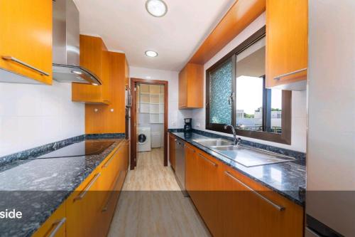 Tento apartmán s klimatizací má 3 ložnice, obývací prostor, kuchyň s kompletním vybavením včetně lednice a myčky nádobí a 2 koupelny. Koupelna je vybavená sprchou a fénem. K dispozici jsou i ručníky a ložní prádlo.
