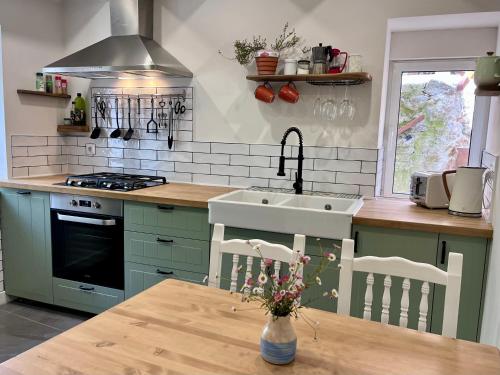 Prázdninový dům má 2 ložnice, 1 koupelnu, ložní prádlo, ručníky, TV s plochou obrazovkou, kuchyň s kompletním vybavením a terasu s výhledem na hory. Koupelna je vybavená sprchou, vanou a fénem.