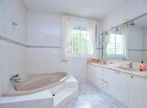 Tento apartmán s klimatizací má 5 ložnice, obývací prostor, kuchyň s kompletním vybavením včetně lednice a myčky nádobí a 4 koupelny. Koupelna je vybavená sprchou a vanou.