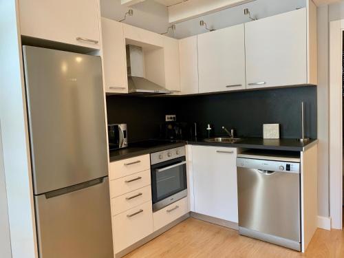 Tento apartmán má 3 ložnice, TV s plochou obrazovkou a kuchyň.