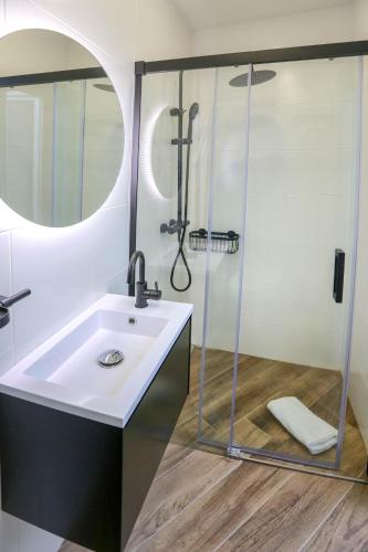 Tento apartmán s klimatizací má 1 ložnici, obývací prostor, kuchyň s kompletním vybavením včetně lednice a mikrovlnné trouby a 1 koupelnu. Koupelna je vybavená sprchou.