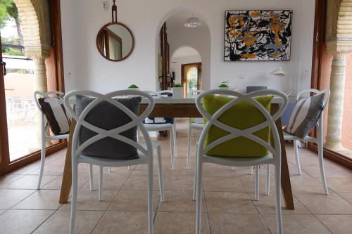 Tato vila má 4 ložnice, 4 koupelny, ložní prádlo, ručníky, TV s plochou obrazovkou, jídelní část a kuchyň s kompletním vybavením. Může se pochlubit také terasou s výhledem na hory. Tato vila s klimatizací nabízí také posezení, pračku a koupelnu s fénem.