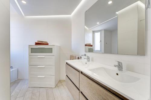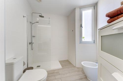 The spacious apartment with a balcony and sea views features 3 bedrooms, a living room, a flat-screen TV, an equipped kitchen with a dishwasher and an oven, and 2 bathrooms with a shower.