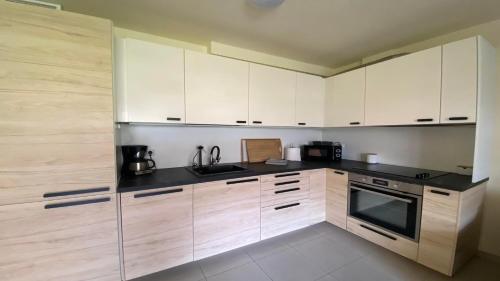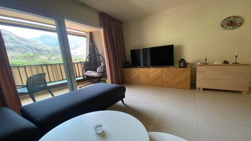 Tento apartmán má TV, kuchyň s dobrým vybavením včetně lednice, trouby a mikrovlnné trouby, koupelnu a terasu s výhledem na hory.