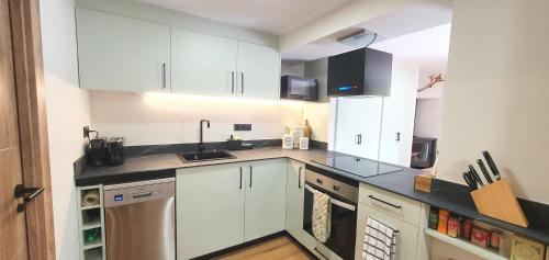 Tento apartmán má 3 ložnice, TV s plochou obrazovkou a kuchyň.