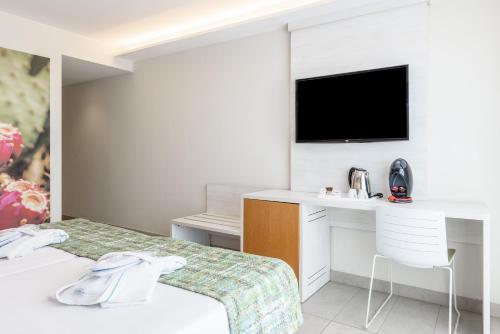 Některé pokoje a apartmá zahrnují terasu, nebo balkon a posezení, kde si můžete odpočinout. Standardem je satelitní TV.