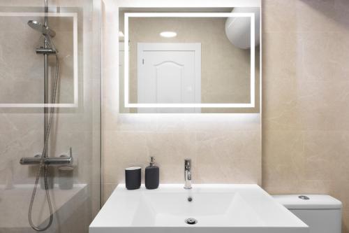 Tento apartmán s klimatizací má 2 ložnice, obývací prostor, kuchyň s kompletním vybavením včetně lednice a myčky nádobí a 2 koupelny. Koupelna je vybavená sprchou a fénem.