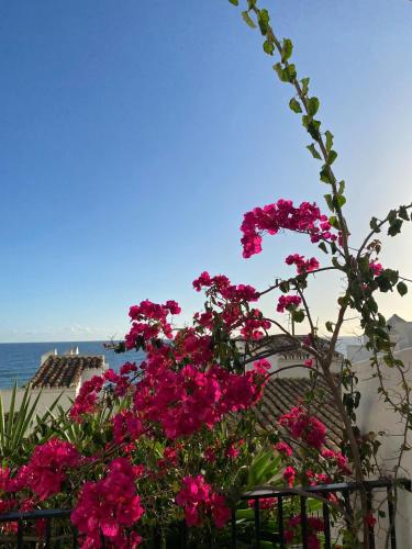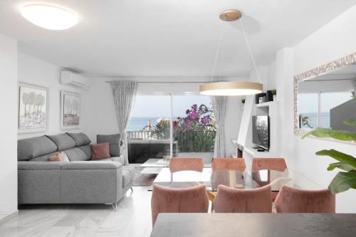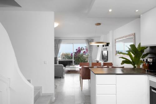 Beachfront duplex with seaview se nachází v destinaci Mijas Costa a nabízí venkovní bazén, zahradu, terasu a ubytování s bezplatným Wi-Fi a výhledem na moře. Toto ubytování u pláže nabízí balkon a neplacené soukromé parkoviště.