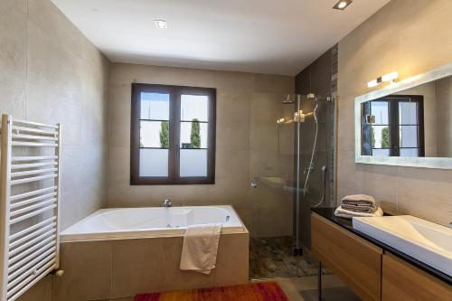 Vila má 4 ložnice, 3 koupelny, ložní prádlo, ručníky, TV se satelitními programy, kuchyň s kompletním vybavením a terasu s výhledem na moře. Koupelna je vybavená sprchou, vanou a fénem.