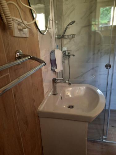 K dispozici je vlastní koupelna s kompletním vybavením včetně sprchy a fénu.