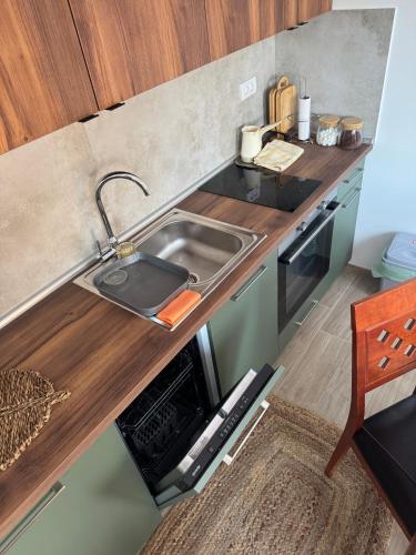 Tento apartmán má 1 ložnici, obývací prostor a kuchyň s kompletním vybavením včetně lednice a myčky nádobí. V tomto apartmánu jsou k dispozici ručníky a ložní prádlo.