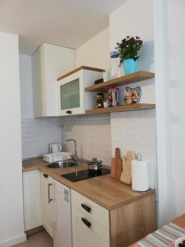 Tento apartmán s klimatizací má 1 ložnici, kuchyň s kompletním vybavením včetně lednice a mikrovlnné trouby a 1 koupelnu. Koupelna je vybavená sprchou a fénem. K dispozici jsou i ručníky a ložní prádlo.