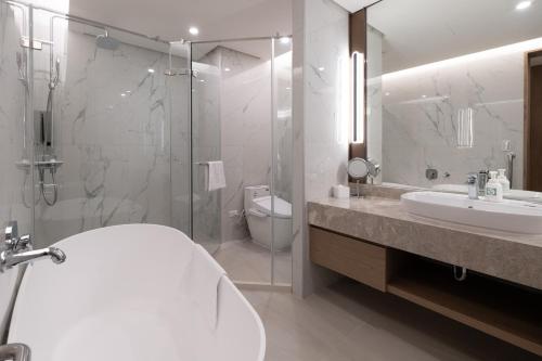 Pokoje v ubytování HE TI Hotel mají TV s plochou obrazovkou se satelitními programy a trezor. Vlastní koupelna je vybavená sprchou a fénem. Všechny pokoje v ubytování HE TI Hotel mají v ceně ložní prádlo a ručníky.