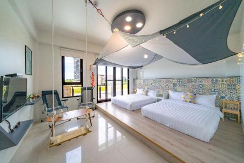 宜蘭頭城多一點民宿 nabízí kola zdarma, terasu a ubytování s klimatizací, balkonem a bezplatným Wi-Fi. Pláž Toucheng Beach se nachází 1,2 km odtud.