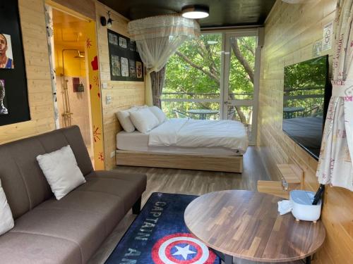 山板樵愛面子民宿 se nachází v destinaci Sanyi a nabízí zahradu s slunnou terasou. Noční trh Feng-ťia se nachází 36 km odtud a Obchodní dům Kuangsan SOGO 39 km. Na místě je k dispozici soukromé parkoviště.