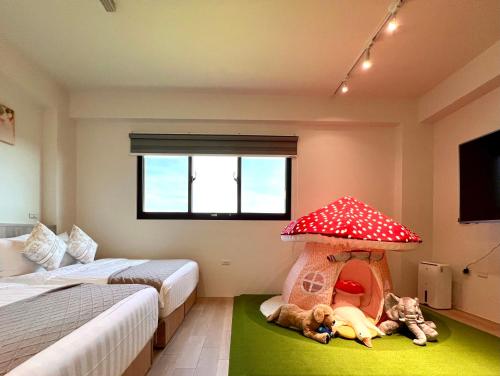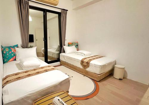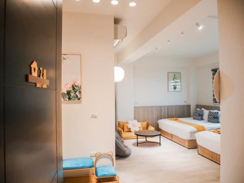 Všechny pokoje v ubytování 家太幸福民宿 mají vlastní koupelnu s fénem, TV s plochou obrazovkou a klimatizaci a některé pokoje mají také balkon.