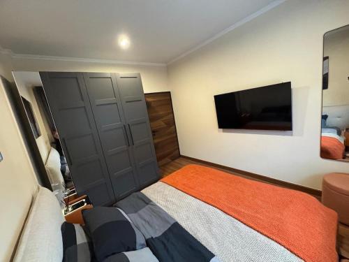 The air-conditioned villa is composed of 3 separate bedrooms, a living room, a fully equipped kitchen, and 3 bathrooms. A flat-screen TV is offered.