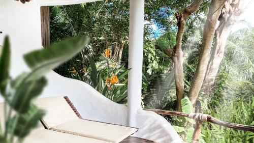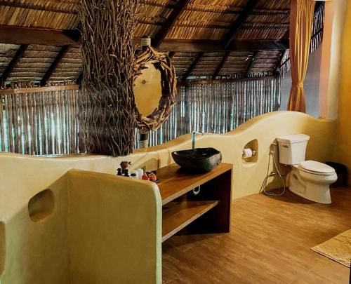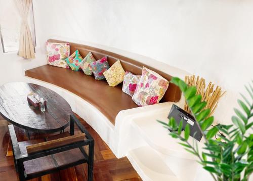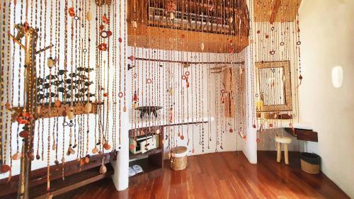 Všechny klimatizované chaty mají vlastní dřevěnou terasu a zpola venkovní koupelnu. Mohou se pochlubit krásným výhledem na tropické okolí. Najdete v nich kabelovou TV, bambusový nábytek a posezení.