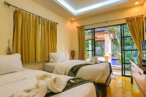 Elegantní vily jsou zařízené moderním thajským nábytkem a mají francouzská okna. Všechny dobře vybavené vily v tomto 4hvězdičkovém nekuřáckém objektu mají obývací prostor. K dispozici je také kabelová TV s plochou obrazovkou a vana.