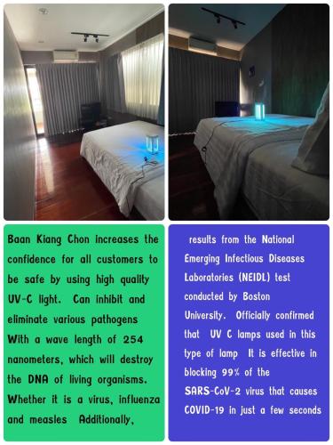 Všechny pokoje v ubytování Baan Keang Chon Ayutthaya บ้านเคียงชล อยุธยา mají klimatizaci, šatní skříň, vlastní koupelnu, TV s plochou obrazovkou, ložní prádlo a ručníky. Mohou se pochlubit také terasou s výhledem na město. Vlastní koupelna je vybavená sprchou a bezplatnými toaletními potřebami. Všechny pokoje jsou vybavené lednicí.