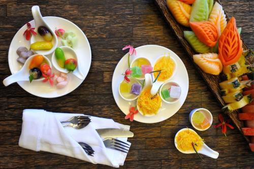 V plážové restauraci si hosté mohou vychutnat pokrmy thajské a mezinárodní kuchyně. Nápoje se podávají v plážovém baru a u bazénu.