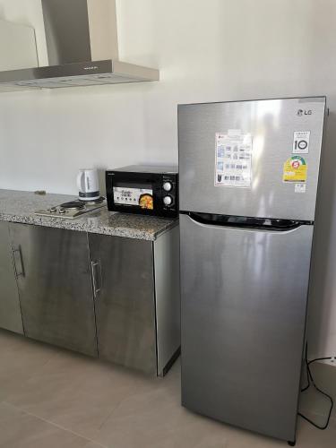 Tato vila s klimatizací má 3 ložnice, obývací prostor, kuchyň s kompletním vybavením včetně lednice a mikrovlnné trouby a 2 koupelny. Koupelna je vybavená sprchou a fénem.