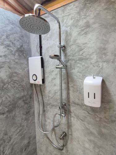Ubytování zahrnuje ventilátor, balkon s posezením a vlastní koupelnu se sprchovým koutem.