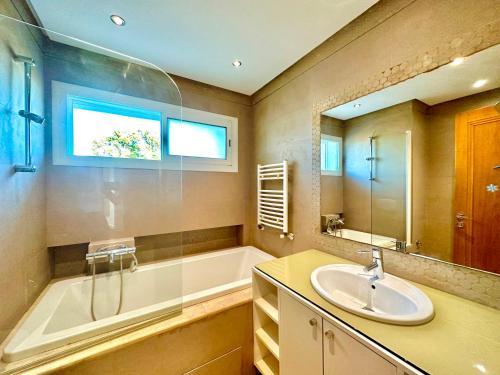 Vila má 5 ložnice, 5 koupelny, ložní prádlo, ručníky, TV se satelitními programy, kuchyň s kompletním vybavením a terasu s výhledem do zahrady. Vila má také koupelnu.