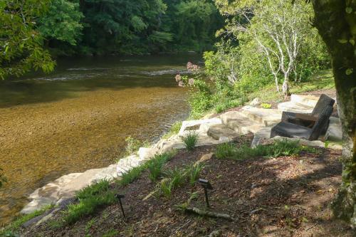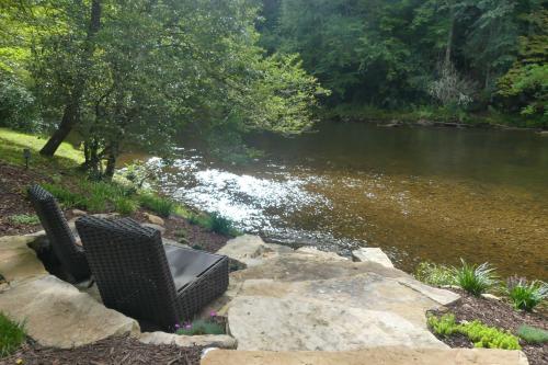 Deck and Mtn Views Riverfront Cullowhee Home
