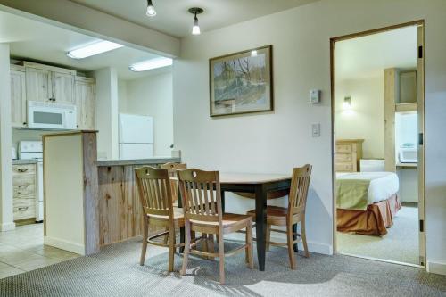 Seventh Mountain Resort má apartmá s dřevěnými prvky, kabelovou TV a bezplatným Wi-Fi. Apartmá mají výhled na les Deschutes a vlastní terasu nebo balkon.