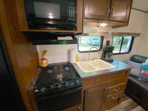 RV located on private property, providing access to the Guadalupe River, accommodates up to 4 guests se nachází v destinaci New Braunfels a nabízí ubytování s bezplatným Wi-Fi a TV. Schlitterbahn Waterpark Resort se nachází 15 km daleko a Comal River 16 km.