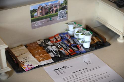 Na místě se podává kontinentální snídaně, anglická/irská snídaně nebo vegetariánská snídaně. Clint Lodge provozuje restauraci s jídly britské kuchyně a jídly skotské kuchyně. Objednat si zde můžete i vegetariánské, bezlaktózové a bezlepkové pokrmy.