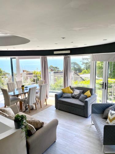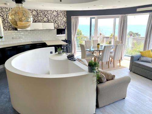 One of the best properties in Lyme! Breathtaking views across the whole bay. 3 stories with 2 tier veranda around the property. Sleeps 6 se nachází v destinaci Lyme Regis a poskytuje fitness centrum, zahradu, terasu a ubytování s bezplatným Wi-Fi a výhledem na moře. Toto ubytování nabízí balkon a neplacené soukromé parkoviště.