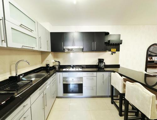 Tento apartmán s klimatizací má 2 ložnice, obývací prostor, kuchyň s kompletním vybavením včetně lednice a trouby a 2 koupelny. Koupelna je vybavená sprchou a fénem.