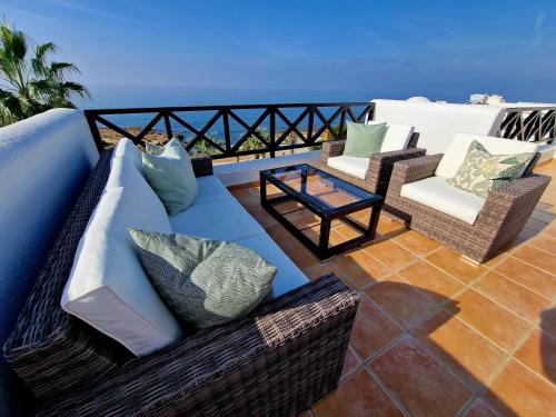 The villa is equipped with 3 bedrooms, 3 bathrooms, bed linen, towels, a flat-screen TV with satellite channels, a dining area, a fully equipped kitchen, and a terrace with sea views. Guests can enjoy a meal on an outdoor dining area while overlooking the pool views. For added privacy, the accommodation features a private entrance.