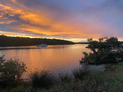 Casa Del Waters ligger i Wooli, New South Wales og har en balkon. Overnatningsstedet ligger 1 minutters gang fra Wooli Beach og har en terrasse samt gratis privat parkering.