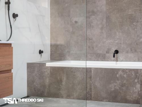 Dette chalet har 3 soveværelser, køkken med køleskab og opvaskemaskine samt 3 badeværelser med bruser, gratis toiletartikler og vaskemaskine. Chaletet har håndklæder og sengetøj.
