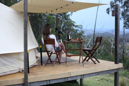 Bajimba Eco Camp & and Farm Stay ligger i Sandy Flat, New South Wales og har en balkon. Luksusteltet ligger i et område hvor gæsterne kan deltage i aktiviteter såsom at tage på vandretur, ride og fiske. Der er gratis privat parkering.