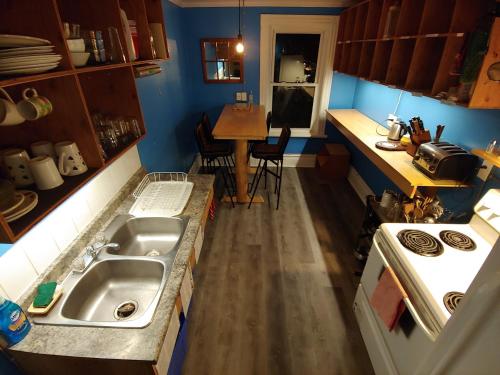 Værelserne hos vandrehjemmet har et fælles badeværelse og udsigt til byen.
