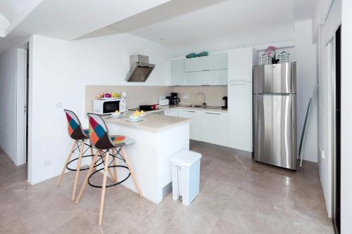 Denne lejlighed med aircondition består af 2 soveværelser, stue, et fuldt udstyret køkken med køleskab og kedel samt 1 badeværelse med bruser og en hårtørrer. Lejligheden har håndklæder og sengetøj.