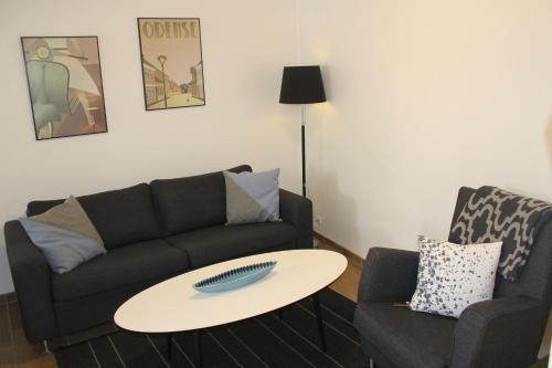 Samtlige lejligheder på Odense Apartments har opholdsområde med sofa og Smart-tv. Sengelinned, håndklæder, vand, varme, el og rengøring er inkluderet i prisen.