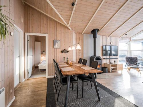 Feriehuset har 3 soveværelser og et fuldt udstyret køkken med køleskab og opvaskemaskine.