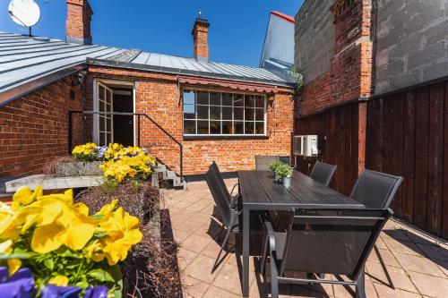 Hermannuse Maja ligger i den gamle bydel i Haapsalu på Estlands vestkyst, lige ved siden af de naturskønne ruiner af Haapsalu Slot. Balkonen på 1. sal har udsigt over slottets mure.