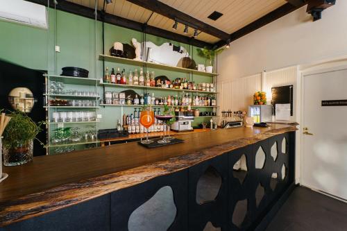 Der serveres estiske retter i caféen og pubben i stueetagen, som har en hyggelig pejs. Væggene er dekoreret med periodiske udstillinger af fotografier og malerier af estiske kunstnere. Der er gratis trådløs internetadgang.