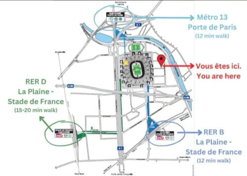 Apartment at only a few steps from Stade de France and 10 min from RER-B ligger i Saint-Denis, 9 minutters gang fra Stade de France, 6,1 km fra Gare du Nord og 6,5 km fra Gare de l'Est. Her er en balkon og gratis wi-fi. Overnatningsstedet ligger 6,5 km fra La Cigale og 6,7 km fra Pigalle Metrostation. Her er udsigt til en have.
